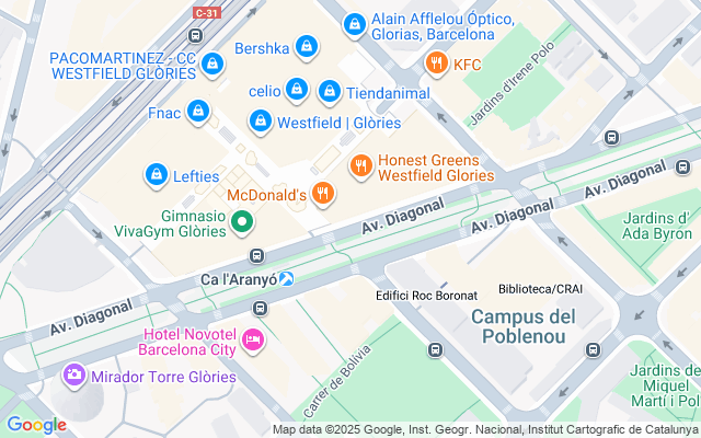 Oficina representativa implantada en Avinguda Diagonal – 22@, Barcelona Disponibilidad: Inmediata Ubicada en plena Avinguda Diagonal, junto a la zona de Glòries, esta oficina ofrece un espacio moderno, diáfano y muy luminoso en uno de los ejes empresariales más dinámicos de Barcelona: el distrito 22@. Su localización estratégica y el excelente nivel de servicios del edificio la convierten en una opción ideal para empresas que buscan funcionalidad, proyección y una imagen representativa. El inmueble, completamente reformado, dispone de instalaciones de alta calidad y zonas comunes renovadas, garantizando confort, seguridad y eficiencia. Características del edificio: Oficina implantada Edificio exclusivo de oficinas de 5 plantas, totalmente reformado 3 halls de acceso al edificio Control de acceso Zonas comunes renovadas Tarjeta de ventajas en el Centro Comercial Gimnasio (Viva Gym) Parking privado LEED Platinum Servicio de conserjería y vigilancia 24 horas Ascensores y varios lobbies de entrada Características de las oficinas: Plantas diáfanas con abundante luz natural Baños privativos Suelo técnico Falso techo registrable Climatización frío/calor VRV Luces LED Condiciones económicas: Gastos de comunidad e IBI: 4,75 €/m²/mes – no incluidos Comunicaciones y accesos: Ubicación excelente con magníficas conexiones de transporte público: Metro: L1 (Glòries y Marina) Renfe: Arc de Triomf Autobuses: 6, 7, 33, 34, 67, H8, V15 y otros Tranvía: T4 (Marina) Aeropuerto de Barcelona: a tan solo 30 minutos Este espacio representa una oportunidad única para empresas que buscan una oficina diáfana, luminosa y ubicada en una de las zonas de mayor proyección de la ciudad. Contáctanos para más información o para concertar una visita sin compromiso